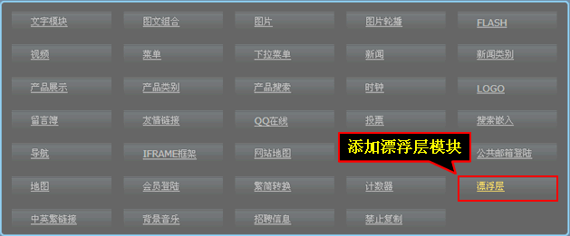 2、点击添加“漂浮层模块